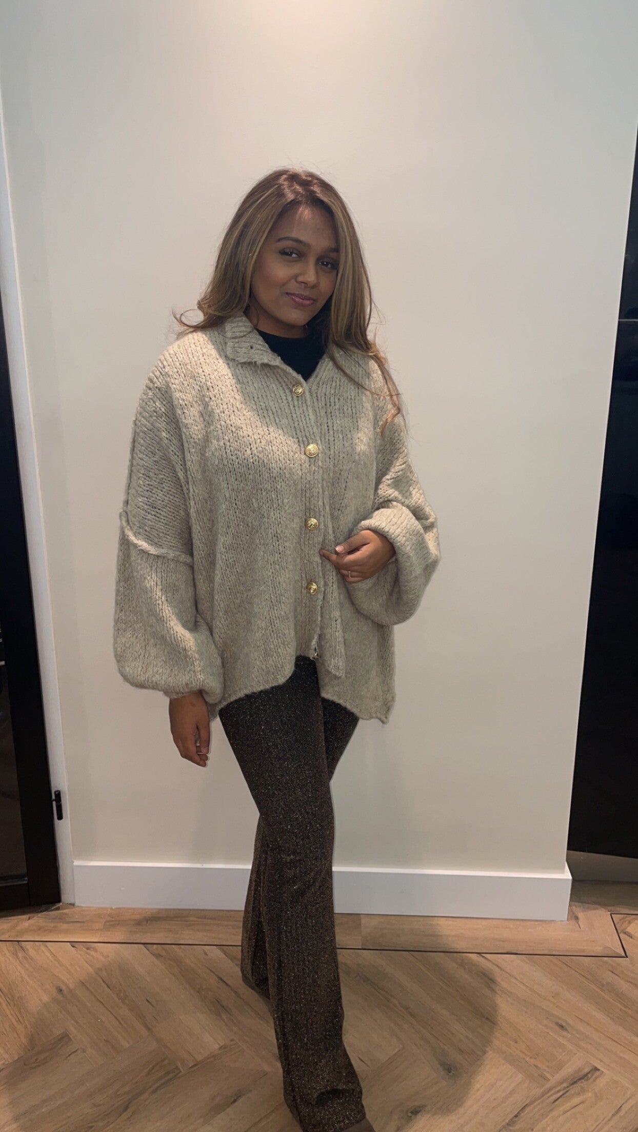 MUSTHAVE// deze heerlijke knit met balonnen mouwen afgewerkt met gouden knopen is oneindig te combineren. Winter musthave voor jin e kast!