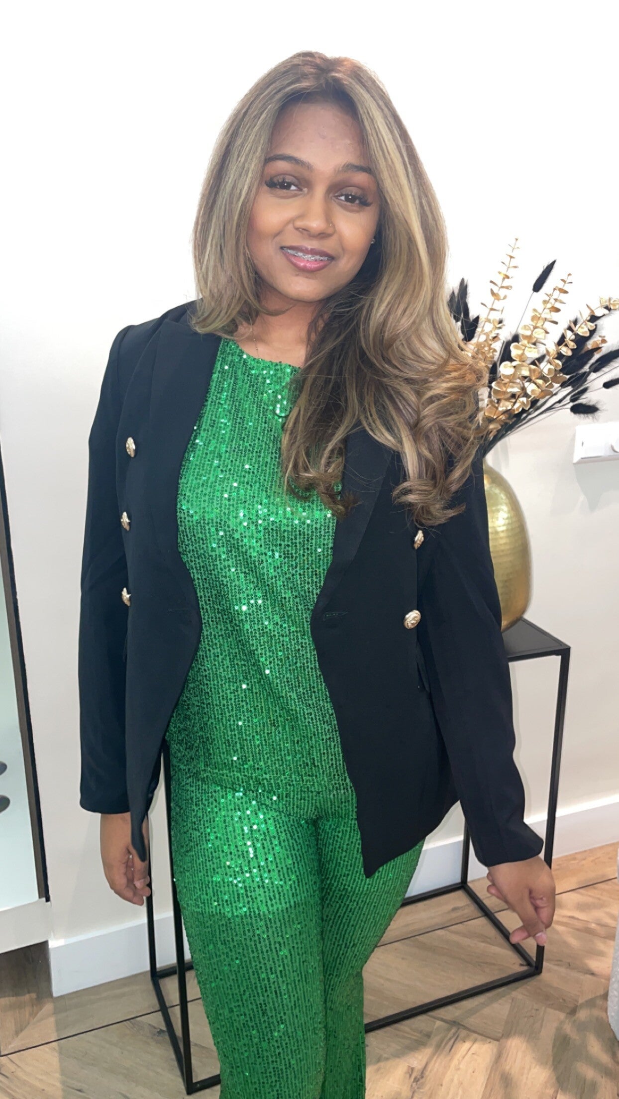 Classy// Black and Gold Blazer zwarte blazer met gouden knoopen.