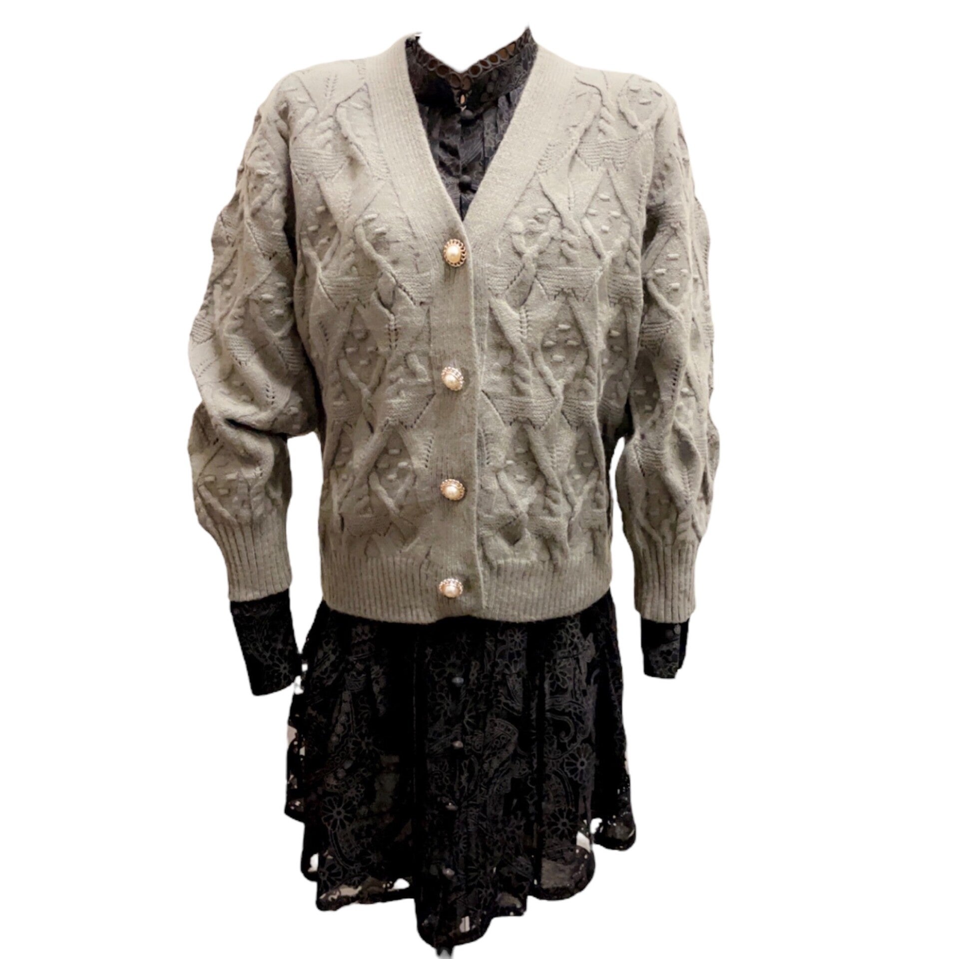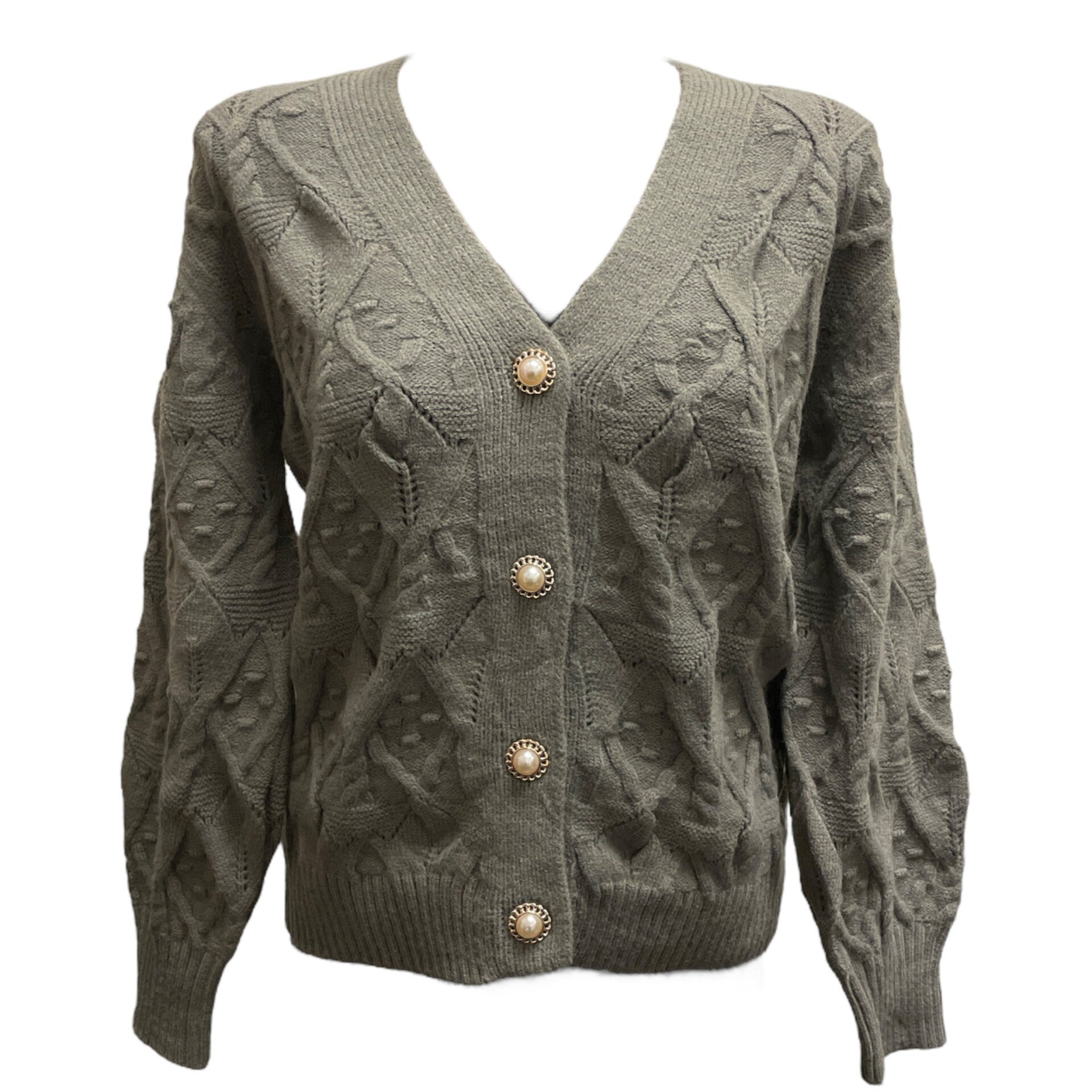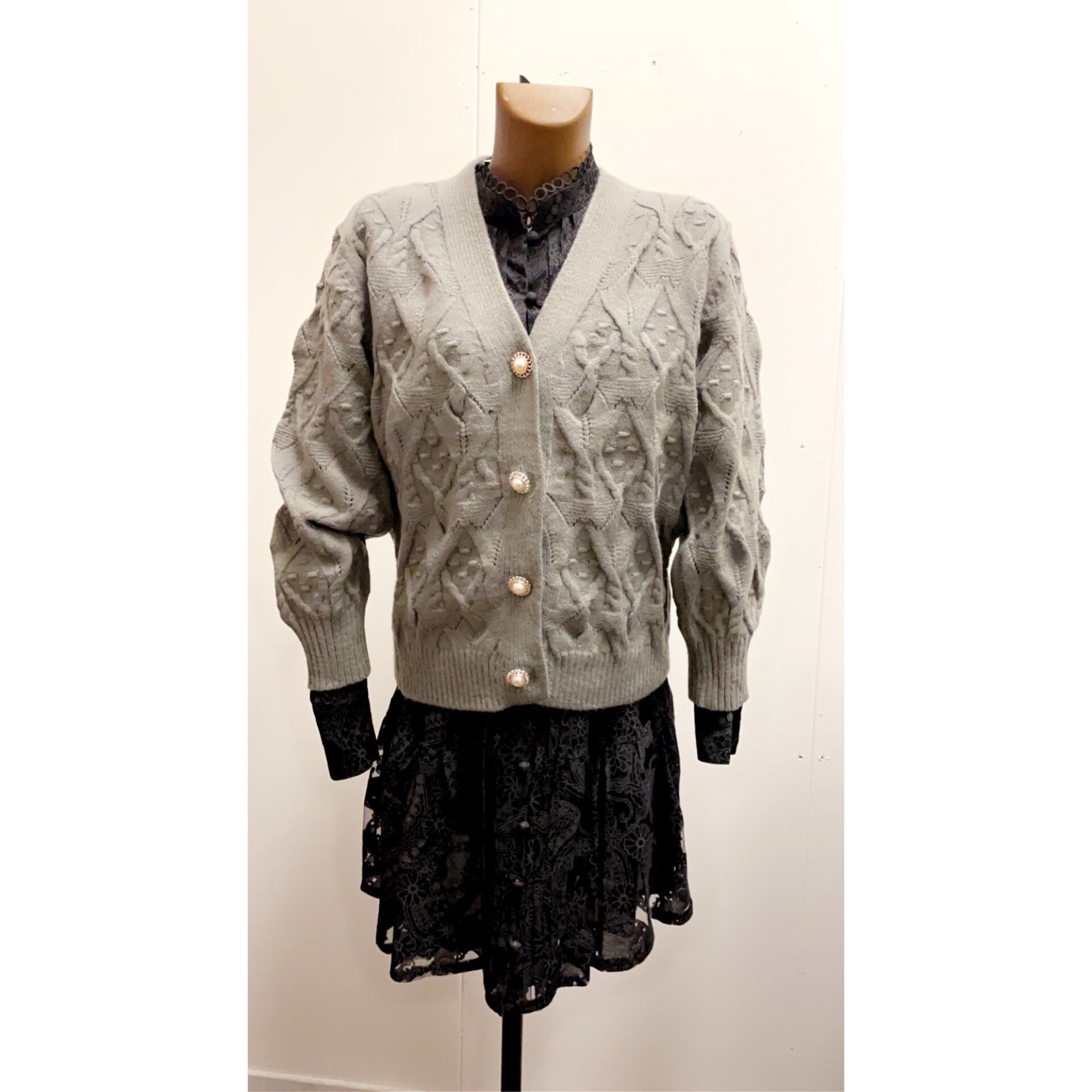 Vest met bewerkte parel knopen. Lekker warm voor de koudere dagen. Leuk met een rok, spijkerbroek of blouse jurk.